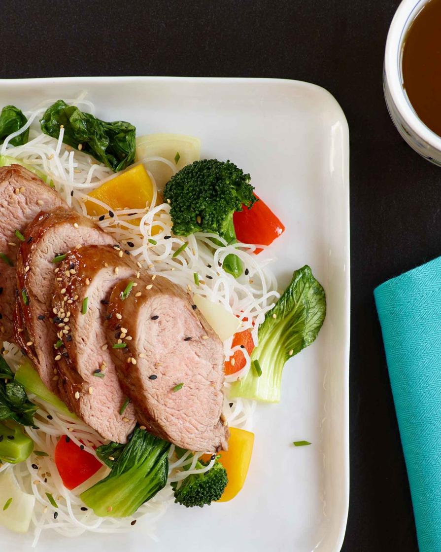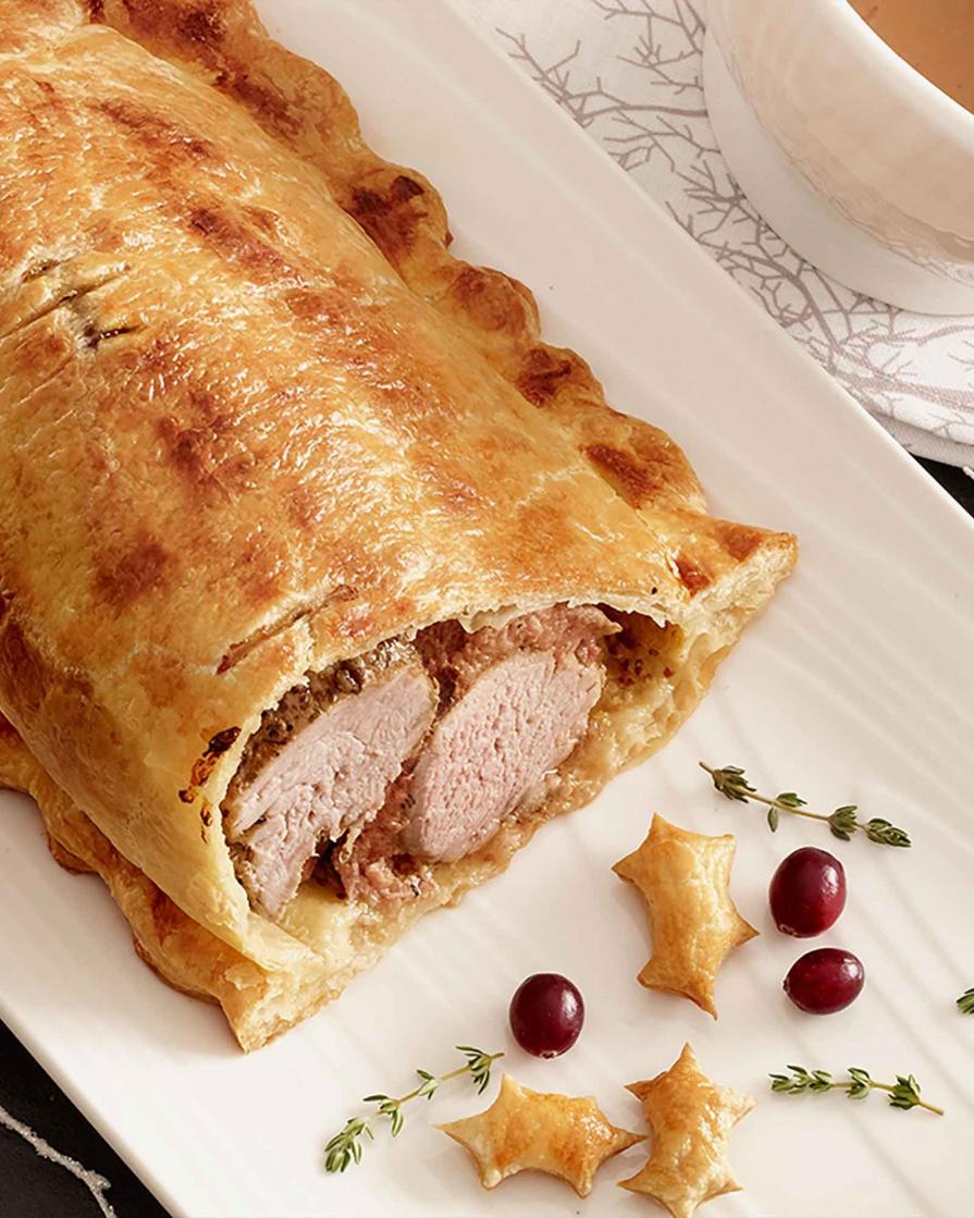 3. Place the tenderloin in an ovenproof dish and bake for 18 to 20 minutes or until the meat thermometer inserted in the centre reads 63 °C (145 °F).