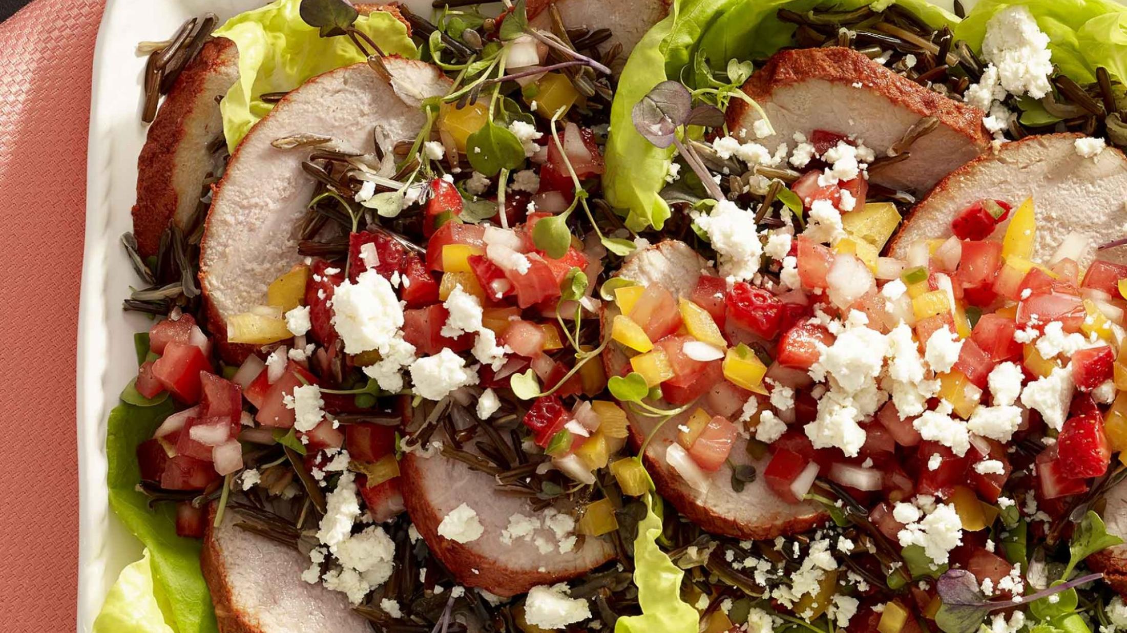 - During cooking, combine all the strawberry salsa ingredients in a bowl and set aside at room temperature.