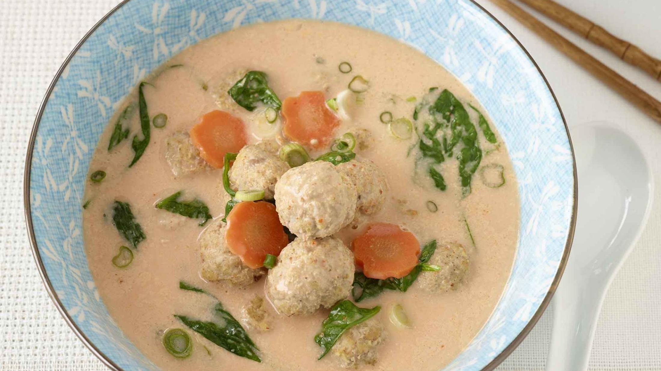 - Place the meatballs in the broth-curry mixture and continue cooking for 5 minutes.
