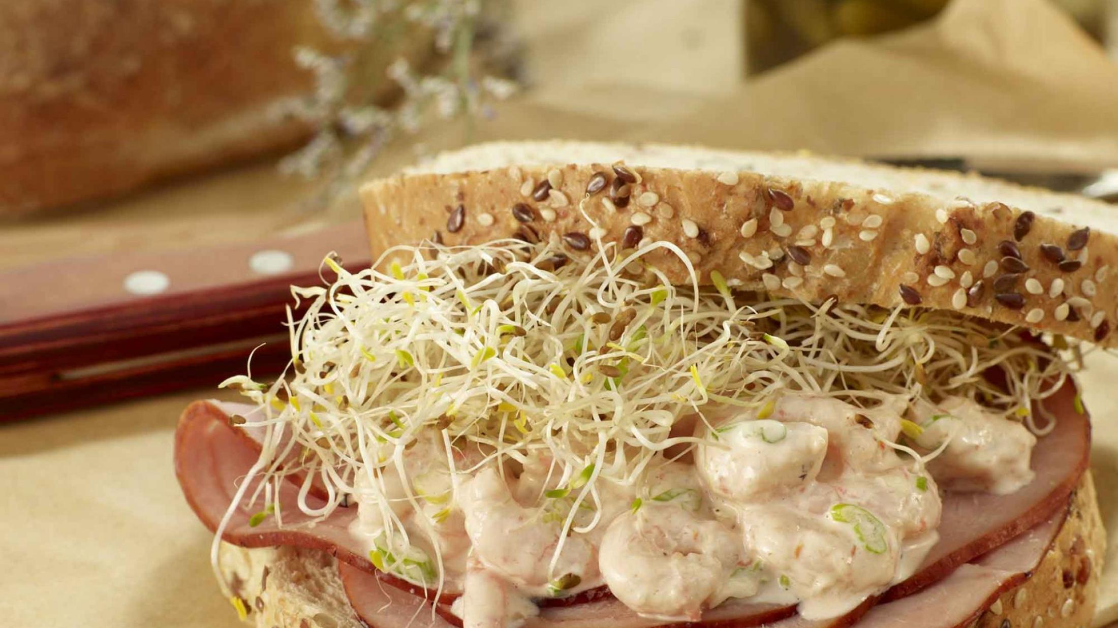 Gourmet shrimp and black forest ham sandwich