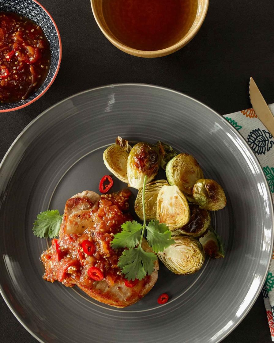 Cook the chops for 7 to 8 minutes on each side or until the meat thermometer inserted in the centre reads 71 °C (160 °F).
