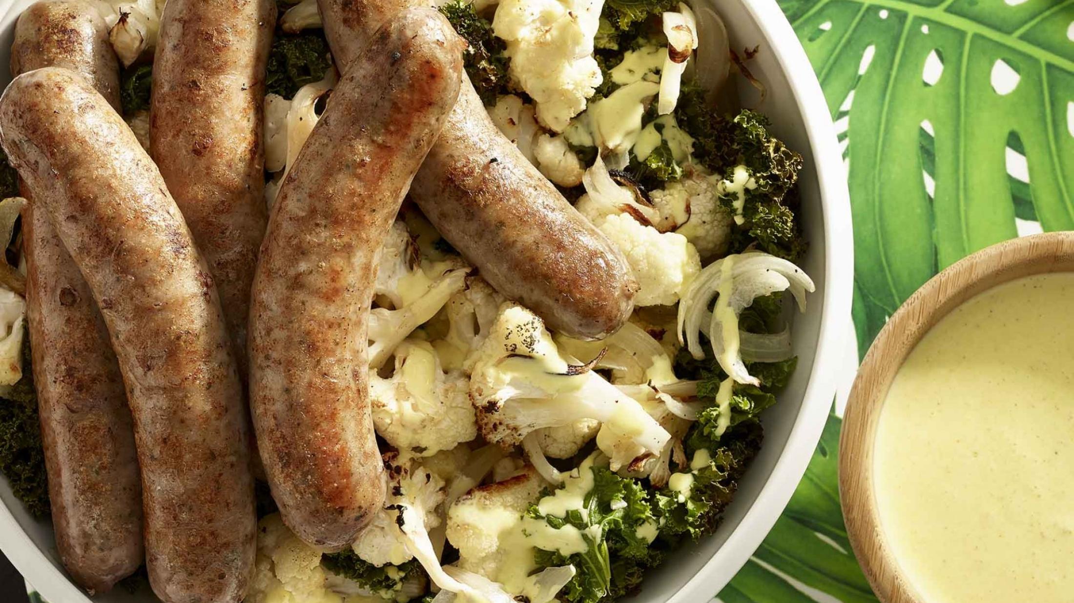 - On a second baking sheet lined with parchment paper, arrange the sausages and bake for 20 minutes.