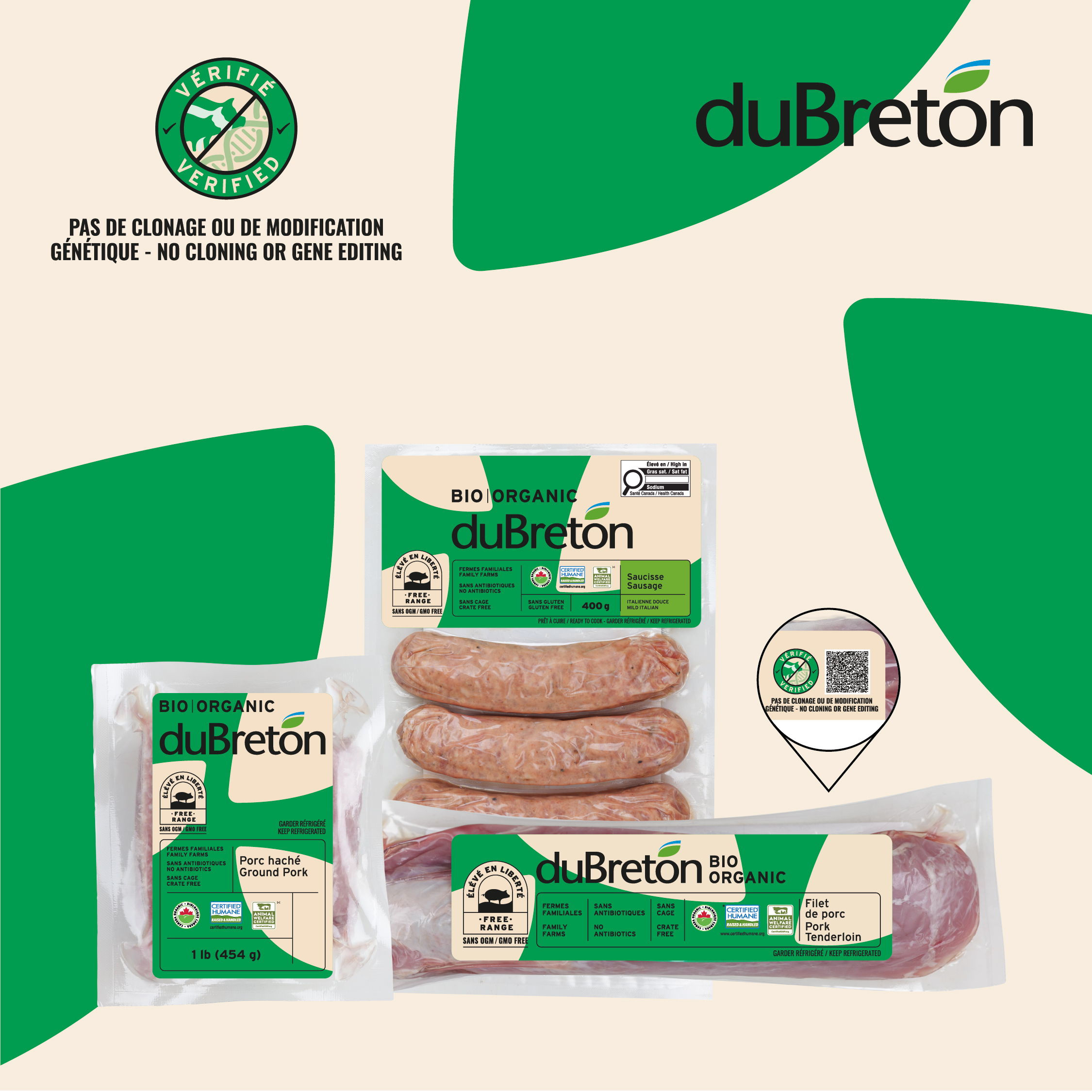 Ancrée dans quatre générations d’excellence agroalimentaire, duBreton défend une vision d’un monde où la santé humaine, le bien-être animal et l’agriculture durable prospèrent. Reconnue comme le principal fournisseur nord-américain de porc biologique, avec une présence mondiale en expansion, duBreton dépasse les normes de certification des programmes Global Animal Partnership (GAP), Certified Humane® Raised & Handled, et Biologique Canada. Engagée en faveur d’un système alimentaire juste et équitable, duBreton soutient le bien-être des agriculteurs, des animaux, des personnes et de l’environnement.
