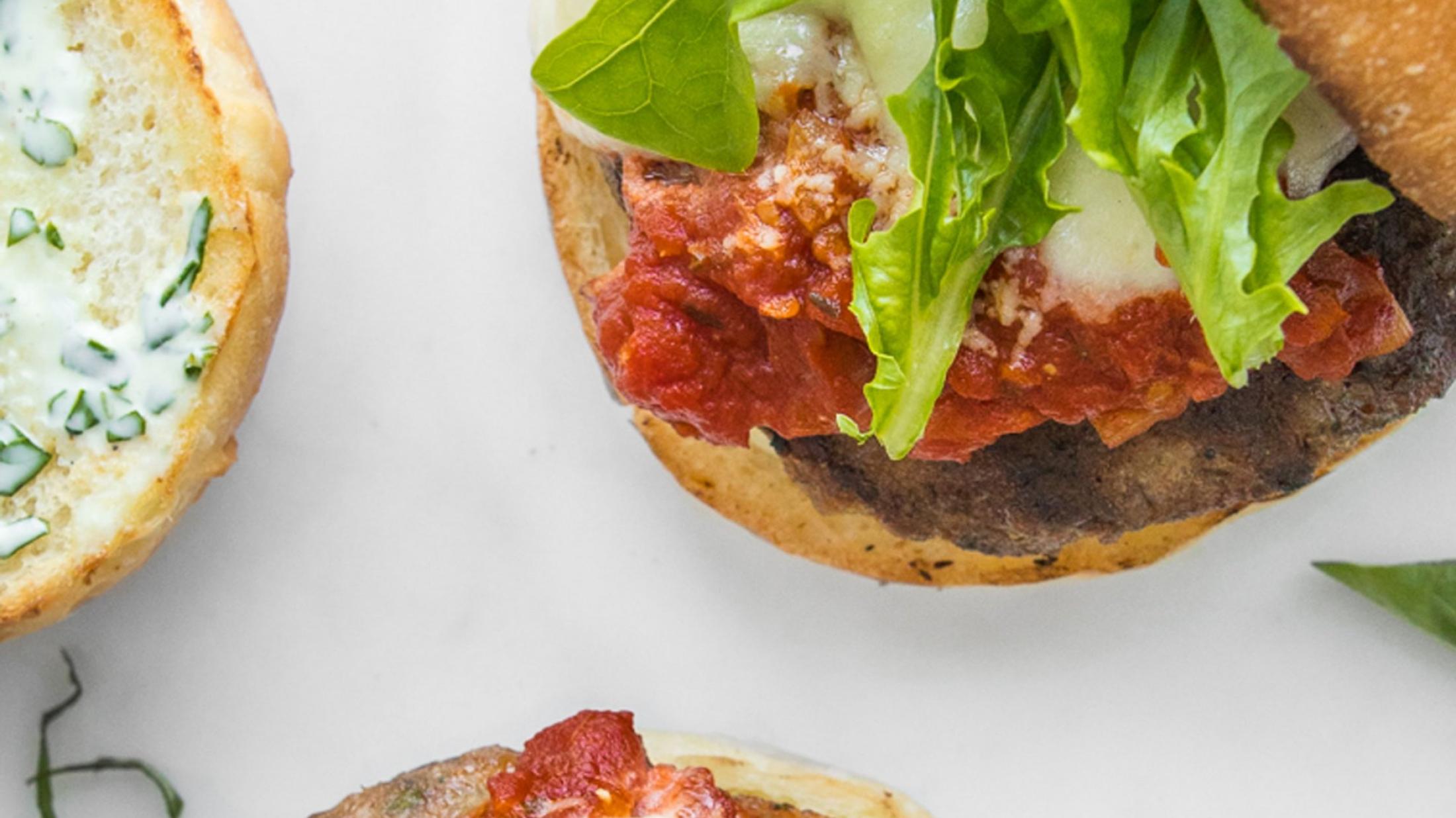 - Retirer les galettes du réfrigérateur et les mettre dans le barbecue préchauffé. Cuire environ 3 à 5 minutes de chaque côté ou jusqu’à ce que la température interne atteigne au moins 160 °F (70 °C). Garnir les galettes de ¼ tasse (60 ml) de sauce tomate, puis parsemer de parmigiano reggiano. Ajouter la mozzarella puis couvrir jusqu’à ce que le fromage soit fondu.