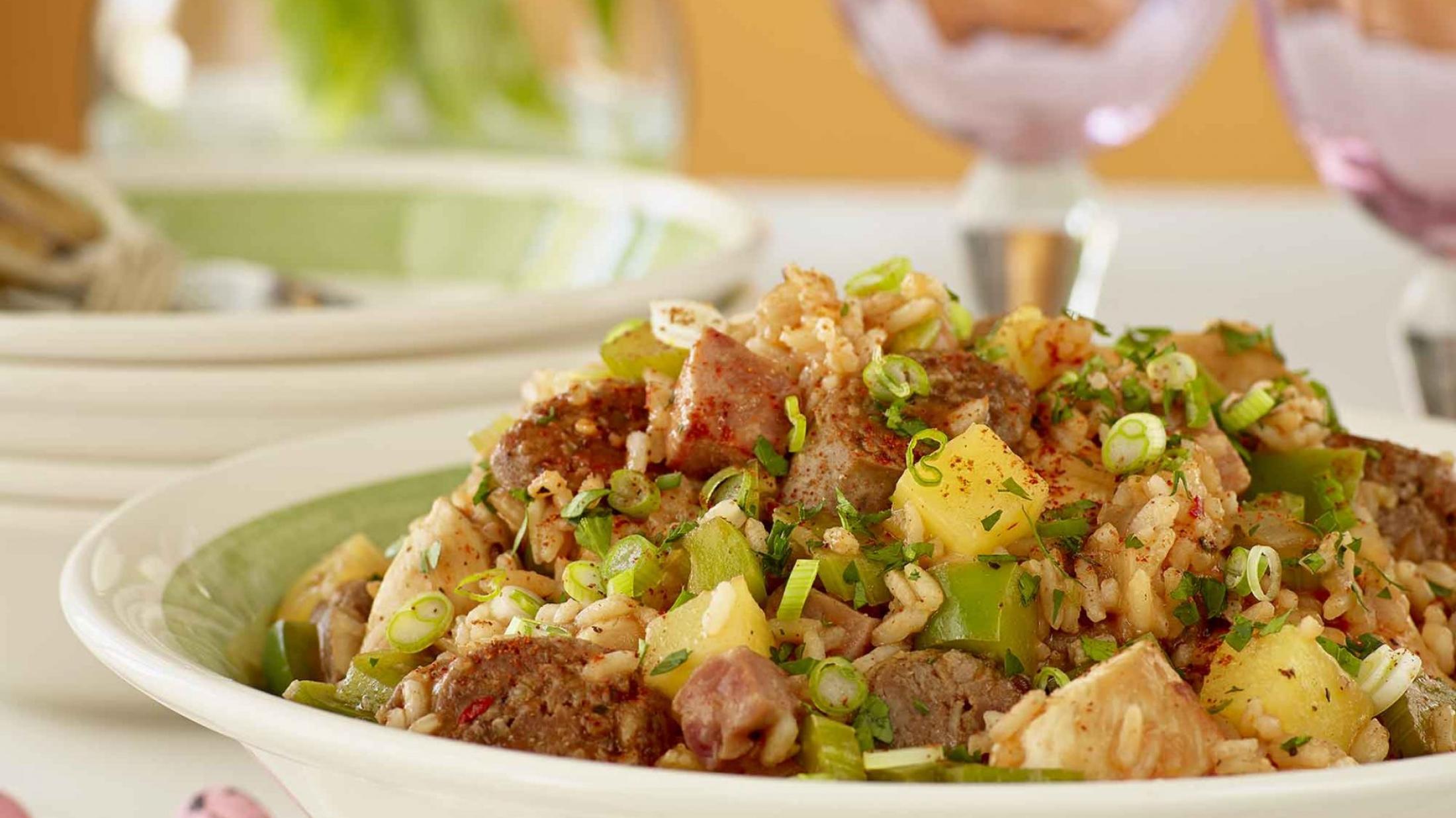 - Ajouter le jambon et les saucisses, cuire 5 minutes pour les colorer.