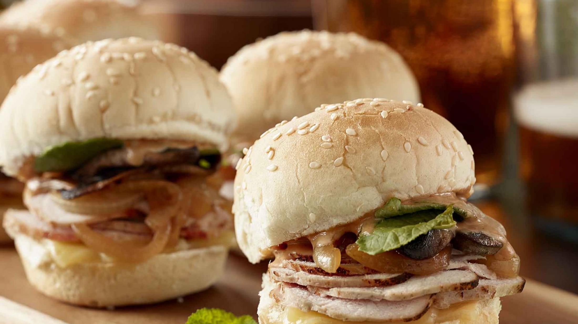 - Badigeonner les parties supérieures des pains avec la mayo-barbecue, refermer les burgers et déguster.