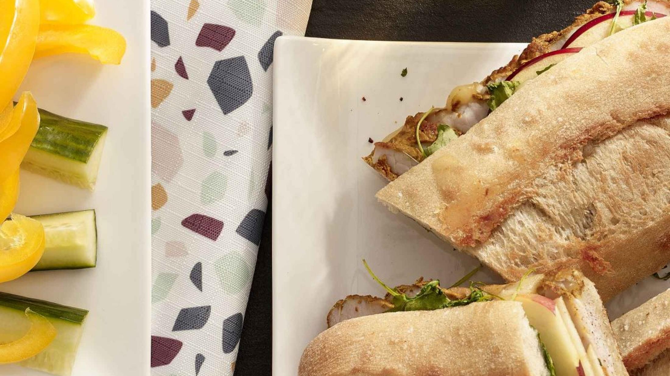 - Entre-temps, couper les pains ciabatta en 2 et les ouvrir comme un livre.