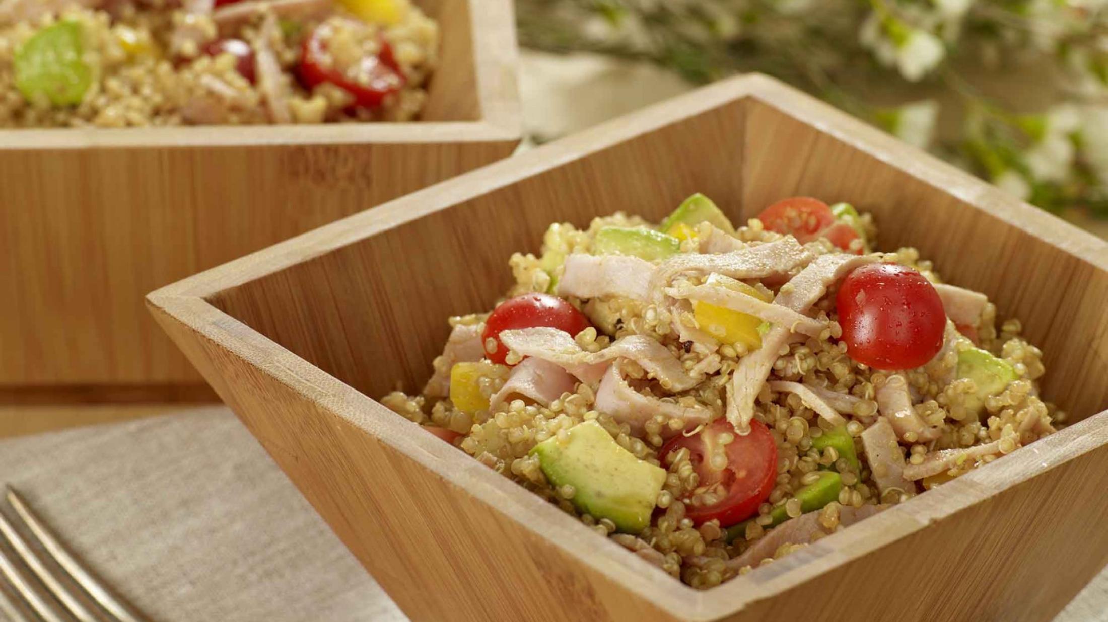 Salade de quinoa épicée à l’avocat et au jambon